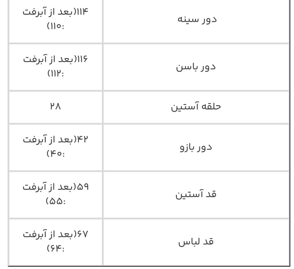 جنس تترون نخ است.فری سایز تا ۴۲ است.